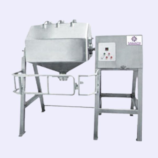 cGMP point of view machine is provided with SS cladding on base, SS belt guards, SS cover on motor. No exposed painted surface on top of the machine. Motor rails, screw and guide rods are chrome plated.